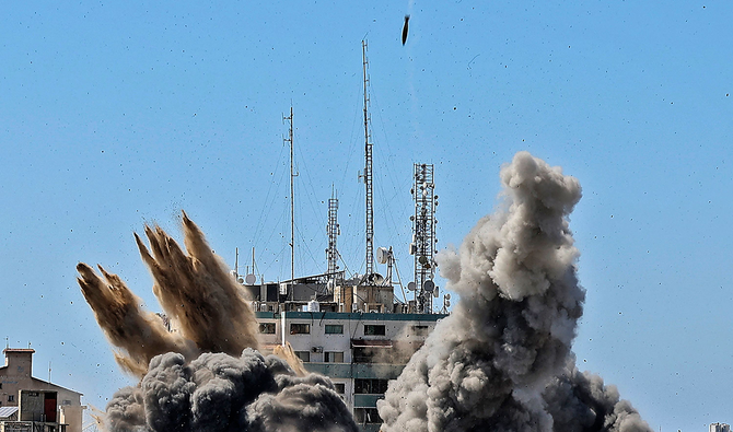 LONDON: Britain’s main opposition Labour Party on Saturday branded an Israeli airstrike that leveled a media building in Gaza as “completely unacceptable,” as up to 100,000 protesters marched through central London to show solidarity with the Palestinian people.