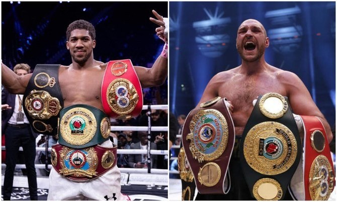 Between them, the two British boxers hold all four major versions of the heavyweight title.