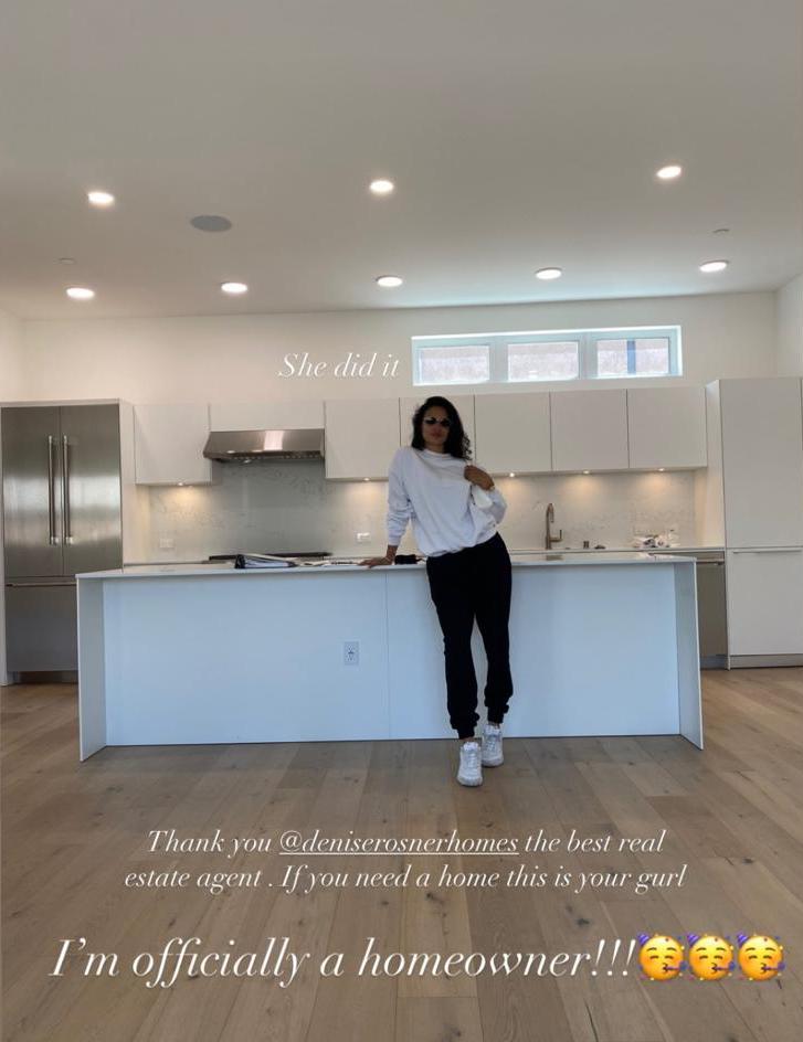 “Thank you @deniserosnerhomes, the best real estate agent,” she captioned an image of herself posing in front of a kitchen island. “If you need a home, this is your gurl (sic),” she added.