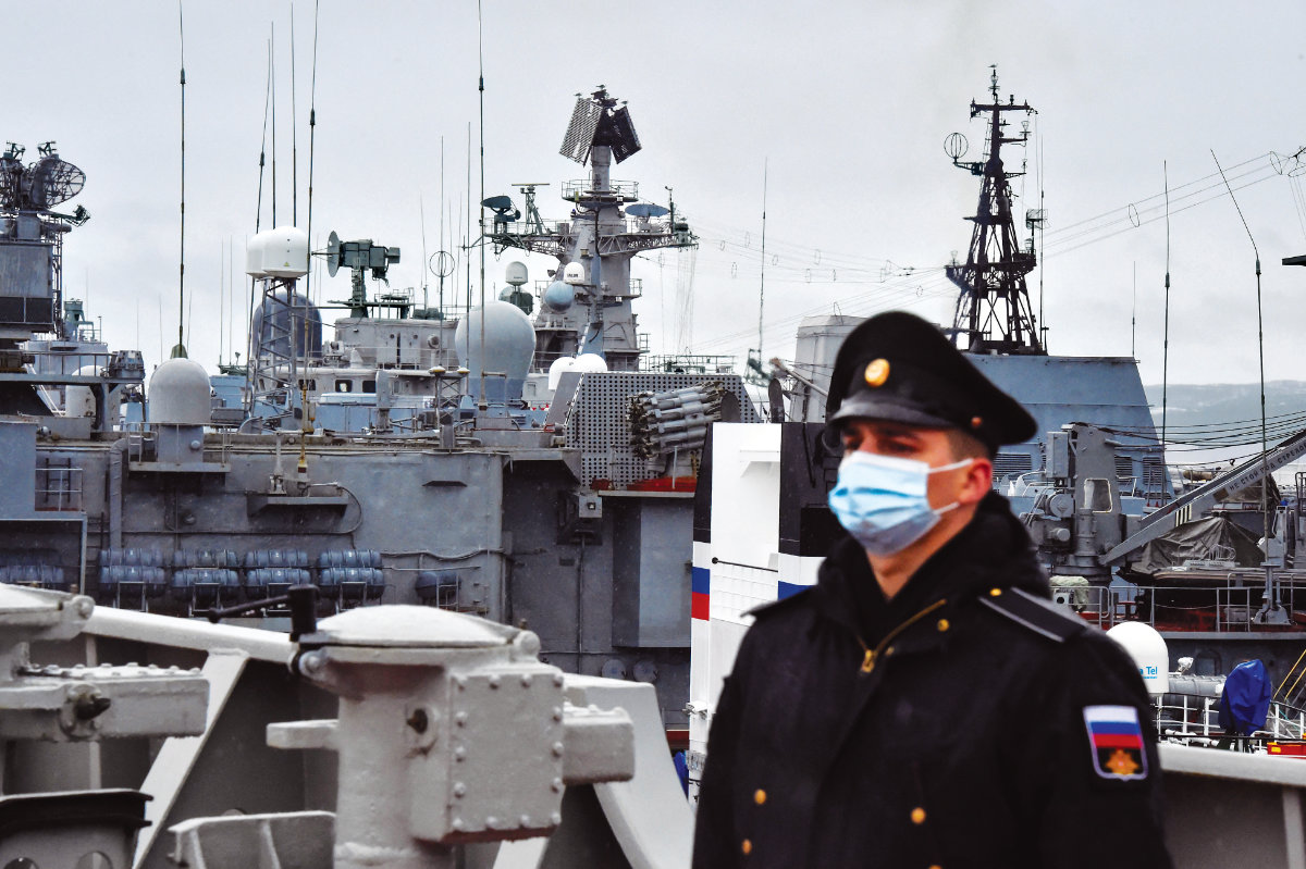 Russian warships at the Arctic base of Severomorsk. The changing geography of the Arctic increases the risk of confrontation between the major powers. (AFP)