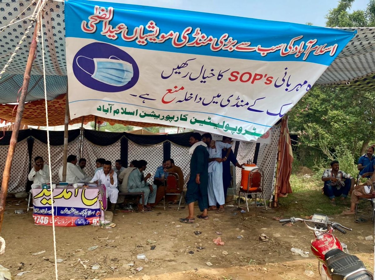 A view of complaint office set up at the Lehtrar road animal market in Islamabad, Pakistan, on July 17, 2021. (AN Photo)