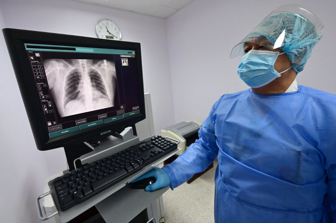 A doctor examines an inmate's X-ray at the medical center of Dubai's Al-Awir central prison amid the COVID-19 pandemic. (AFP file photo)