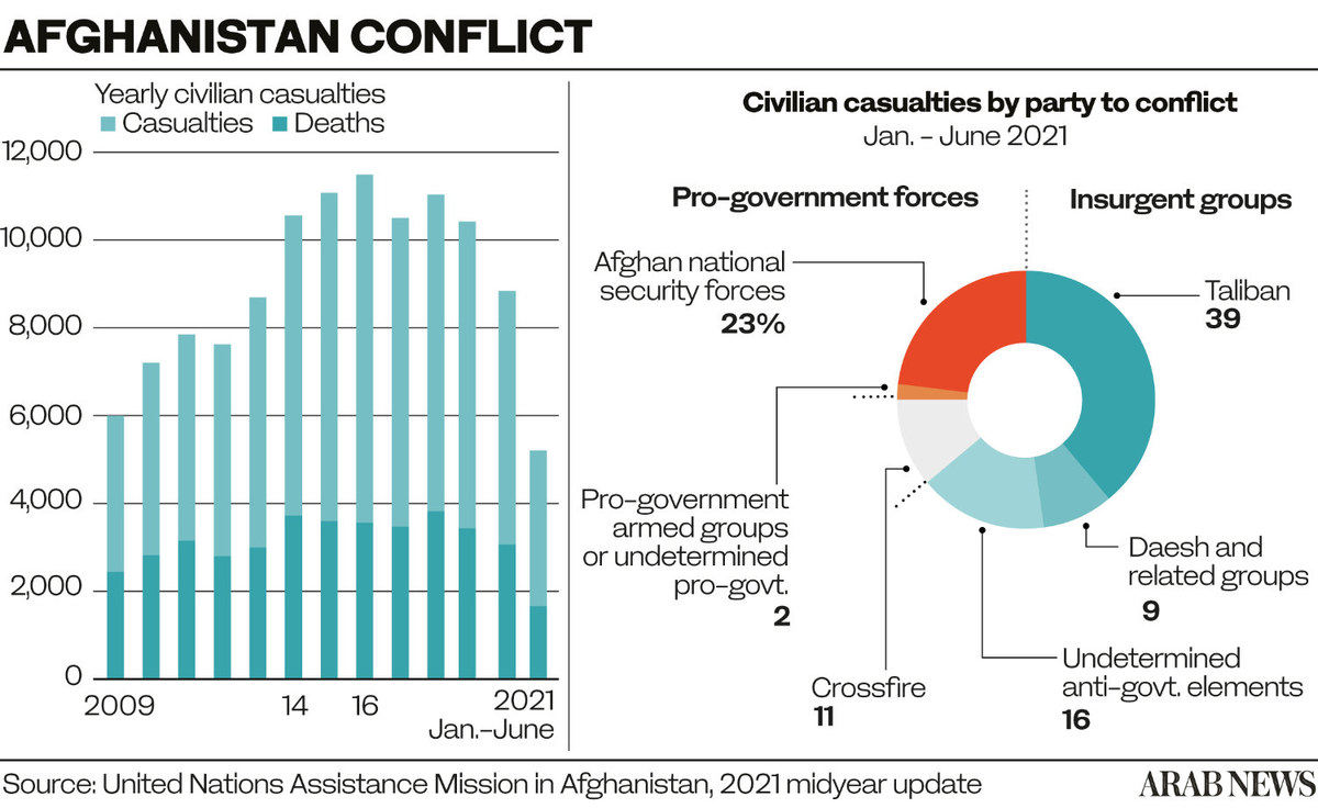 “A full military takeover of Afghanistan by the Taliban is more than unlikely and, if it happens, it will result in a pariah state,” he told Arab News. “It seems that the Taliban also know this fact; hence they will not go for full military victory.