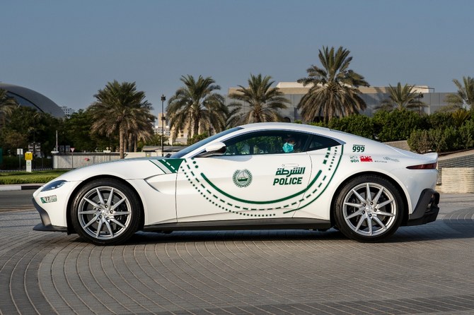 The Dubai Police Vantage features a custom ‘77’ number plate, the number 7 a nod to the UAE’s seven Emirates.