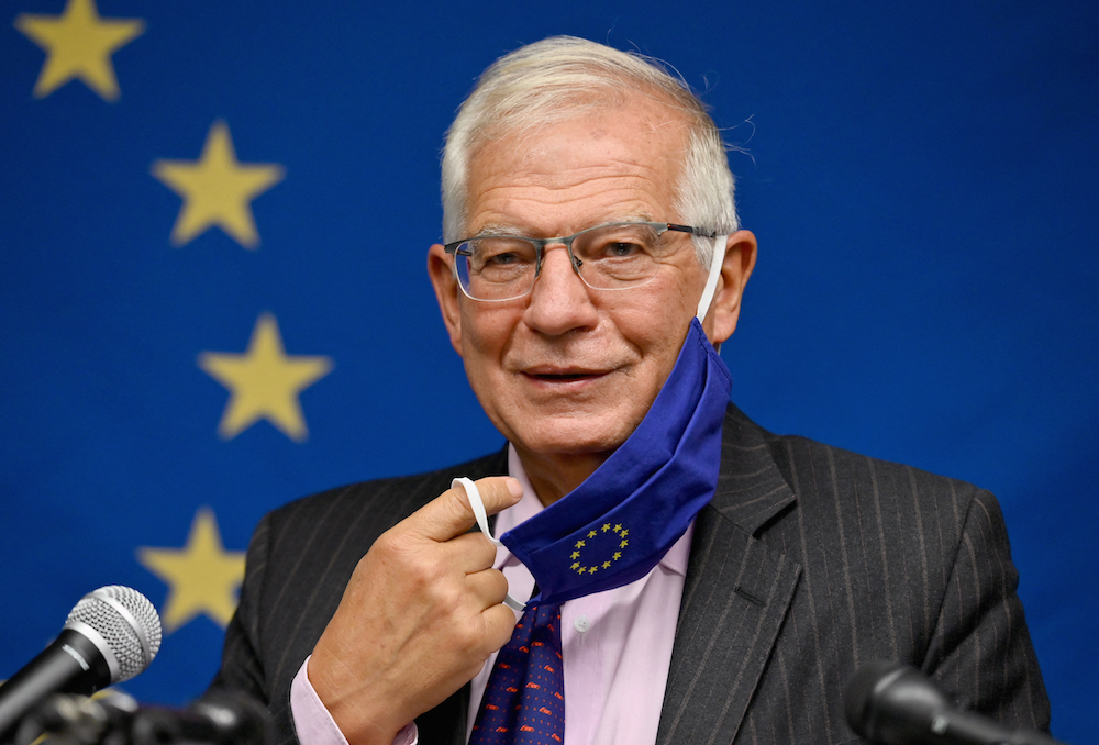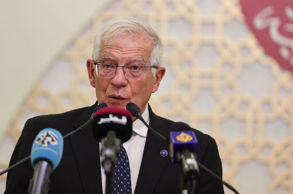 Borrell during a press briefing in Doha on September 30, 2021. (AFP)