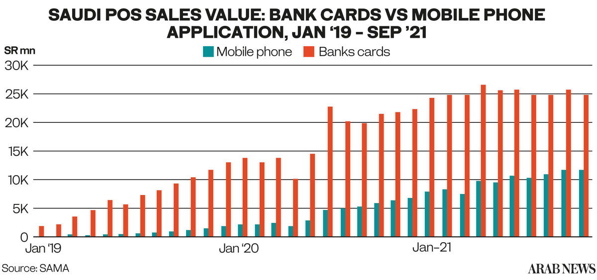 Mobile phone led transactions grew for the fifth consecutive month to SR175.7 million ($46.8 million) in September compared to SR116.9 million (31.14 million) in April 2021, posting a month-on-month growth of three percent.