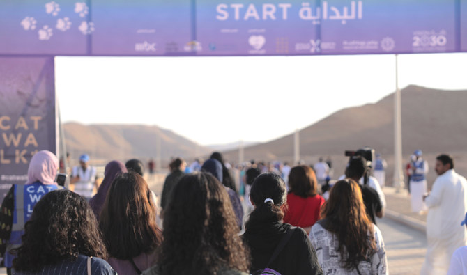 Saudi families gathered on Nov. 6 to take part in the ‘Catwalk’, a 7 km outdoor walk to promote efforts to protect endangered big cats and their ecosystems. (AN photo)