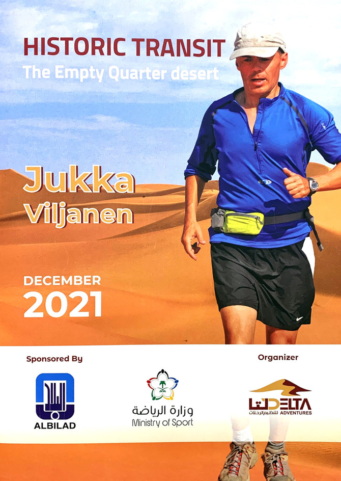 RIYADH: A Finnish adventurer has set himself the challenge of joining the ranks of record-breaking pioneers who have made the grueling journey across Rub Al-Khali, Saudi Arabia’s Empty Quarter. Adventure runner Jukka Viljanen will set off on Dec. 6 on a 25-day journey through 1,300 km of desert terrain, with the aim of becoming the first person to run across the massive desert.