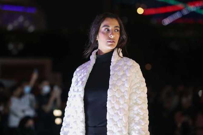 Fellow designer Reem Al-Kanhal told Arab News: “Many of my designs are inspired by Saudi culture but through a modern way. We are showing pieces from the Comeback Collection, whereby I have revived the pieces that have been inspired by our Saudi culture. One, a white shirt, for example has been inspired by … the Najd culture.”