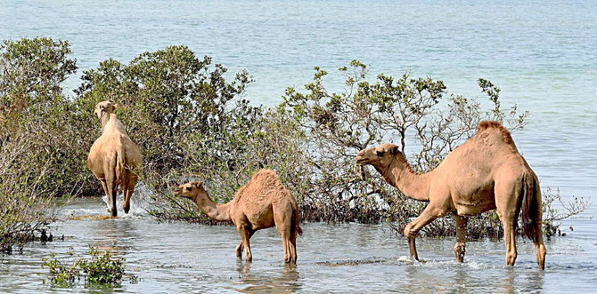 Land-based animals also benefit from mangrove swamps. They provide pastures for camels on islands in the Red Sea, and provide high-quality nutrition for camels in coastal locations during the winter.