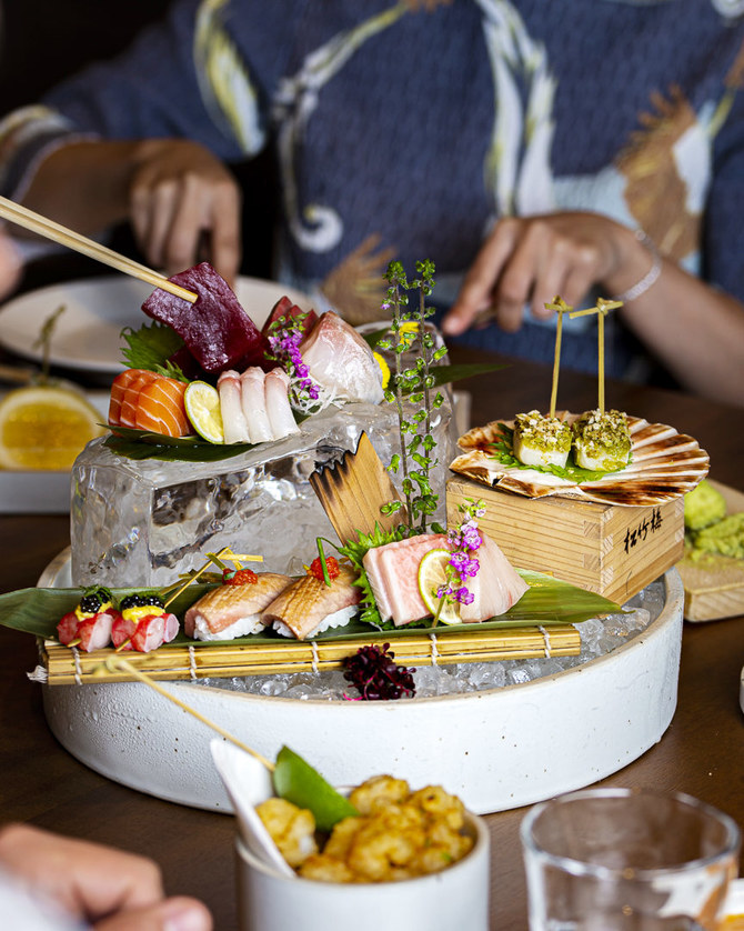 The restaurant, located in the heart of the luxury Tahliah Gate development in Riyadh, features a Japanese-inspired interior with a robata counter made of wood.