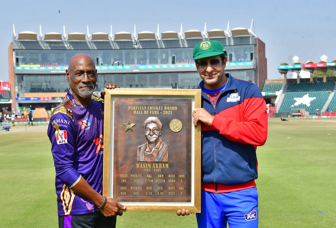 Akram was inducted by the iconic former West Indies batter Sir Viv Richards, who presented him with a commemorative cap and a plaque ahead of the 28th match of the Pakistan Super League (PSL) at Lahore’s Qaddafi Stadium.