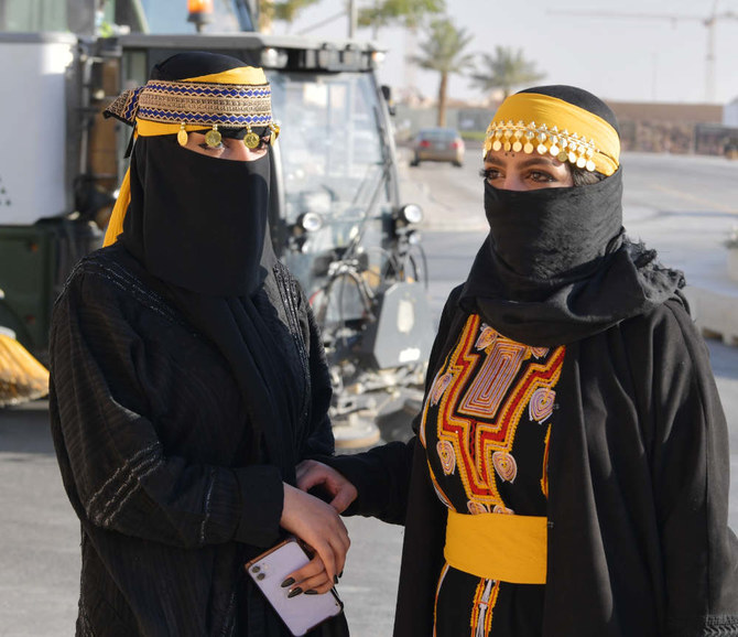 A Haggana band led the parade. Musicians were dressed in traditional attire, blowing their trumpets and smacking a daf, a percussion instrument dating back to the times of Prophet Muhammad, to showcase the depths of the Kingdom’s history.