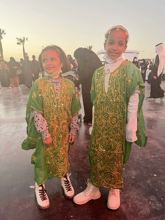 Moudi and her siblings came from Aseer to celebrate founding day at the Boulevard wearing their traditional costume. (AN photos by Rahaf Jambi and Hanouf Albalawi)