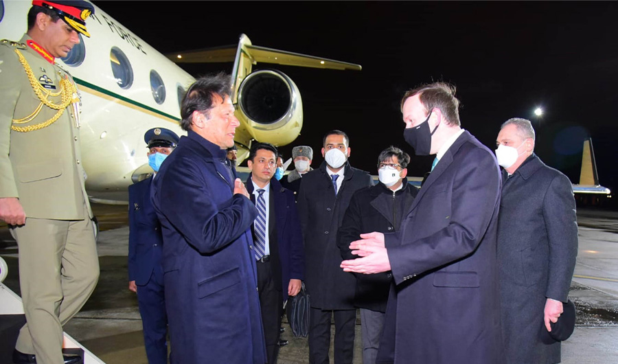 Pakistan Prime Minister Imran Khan receives guard of honor upon his arrival at the Vnukovo International Airport in Moscow, Russia, on February 23, 2022. (PID)