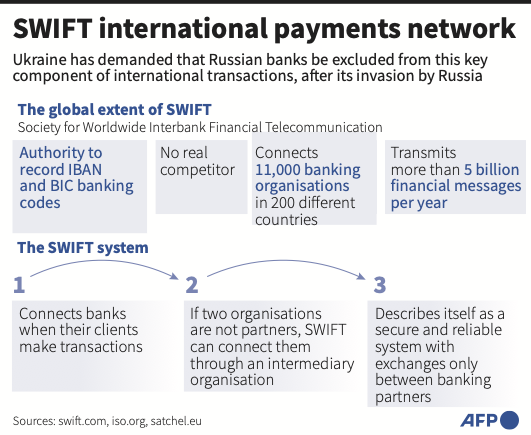 US President Joe Biden, for now, held off imposing some of the most severe sanctions, including cutting Russia out of the SWIFT payment system, which allows for the transfers of money from bank to bank around the globe. Ukraine’s president called for Russia to be cast out of SWIFT, but the US has expressed concern about the potential damage to European economies.