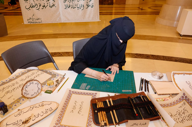 Upon entering the university’s auditorium, students welcomed the guests with their artistic crafts that paid tribute to the Kingdom’s culture through painting, Arabic scripture, carving and calligraphy.