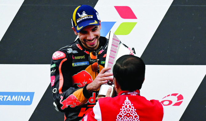 JAKARTA: Portuguese MotoGP rider Miguel Oliveira won Indonesia’s first grand prix race in 25 years on Sunday, claiming victory among the world’s top riders who raced through challenging conditions on the rain-soaked circuit.