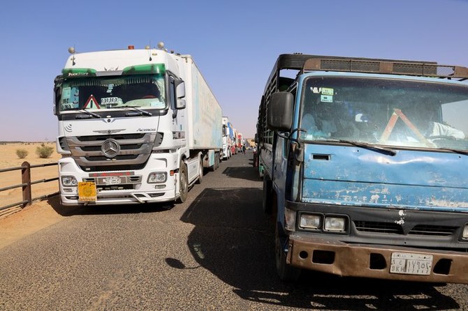 An image showing hundreds of truck drivers stuck in a blockade of a major export route out of Sudan into Egypt. (Reuters/File Photo)