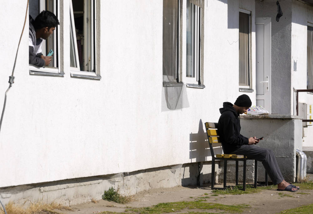 Hasib Qarizada a student from Afghanistan rests outside his room in the "Krnjaca" refugee centre near Belgrade, Serbia, Thursday, Feb. 24, 2022. (AP)