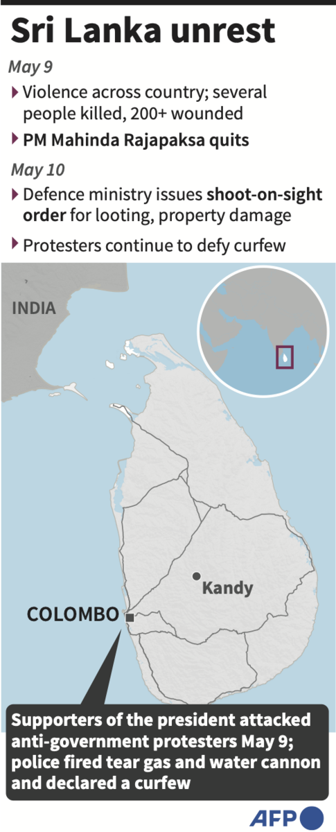 COLOMBO/ NEW DELHI: Protests continued in Sri Lanka on Tuesday despite a nationwide curfew imposed a day after violent clashes saw the resignation of the prime minister, sparking fears over escalating civil unrest.