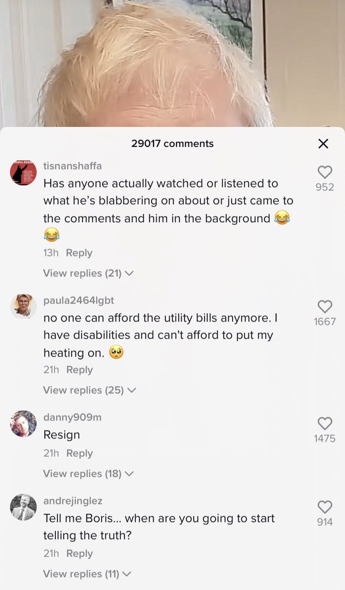 On Twitter, one user said, “Boris Johnson isn’t going to last two minutes on TikTok,” while another wrote, “can Boris Johnson get off TikTok please?”