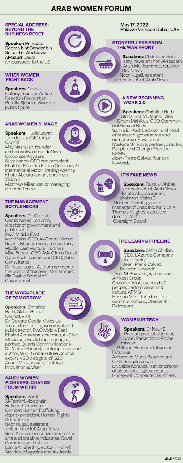 Harb said there were two main challenges facing women in the workplace today. “One is female representation in C-level positions. If we look at the Middle East and North Africa region, we still have a low representation of women in board rooms and C-level positions and, even if companies today are promoting diversity and inclusion, the representation in the region is still very low across industries and the region in general,” she told Arab News ahead of the event.