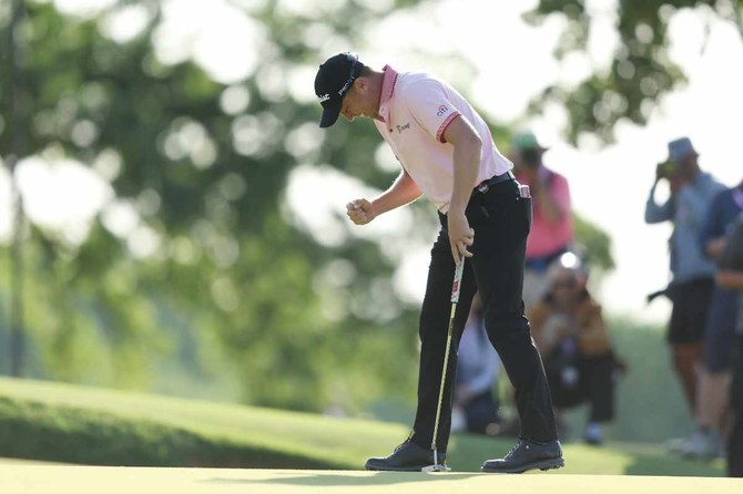 Even after five bogeys, he never lost the lead and delivered clutch par saves from the bunker left of the ninth green and from well behind the 10th green. None was bigger than his 12-foot putt on the 16th to stay one shot ahead.