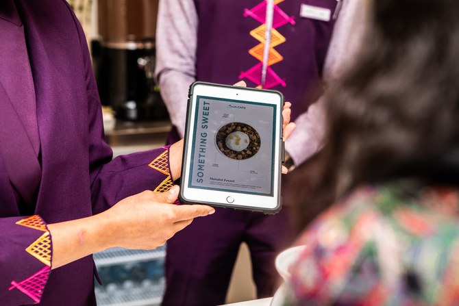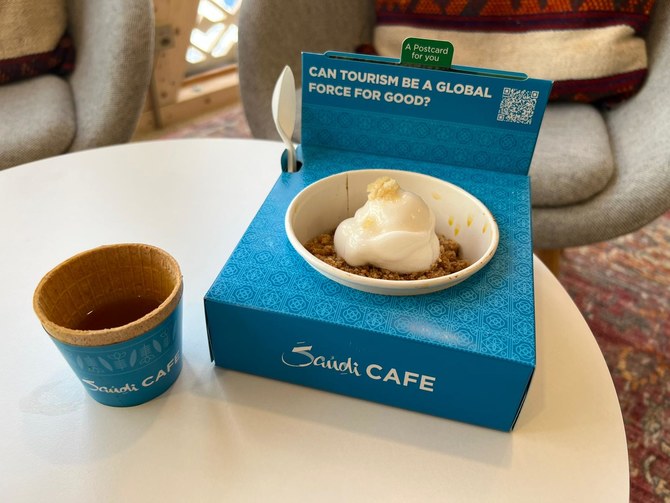 Visitors can enjoy Saudi delicacies, from pumpkin jereesh to a rose mamoul crumble, as well as the staple of the Kingdom's hospitality, Saudi coffee. The cafe is also a unique combination of elements of Saudi design and art, to give people what Abdullah Al-Dakhil, spokesman for Saudi Tourism Authority, calls “a real taste” of Saudi Arabia.