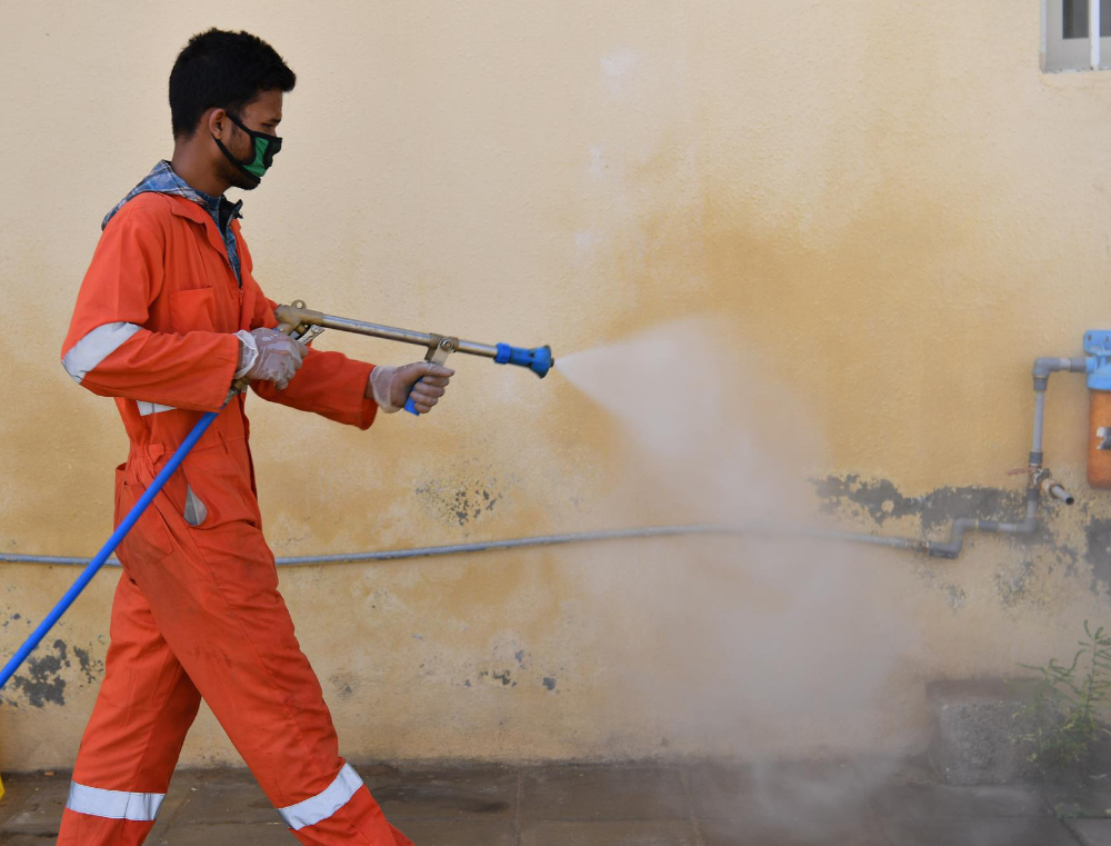A worker disinfects a street in the southern Saudi city of Jazan. (SPA)