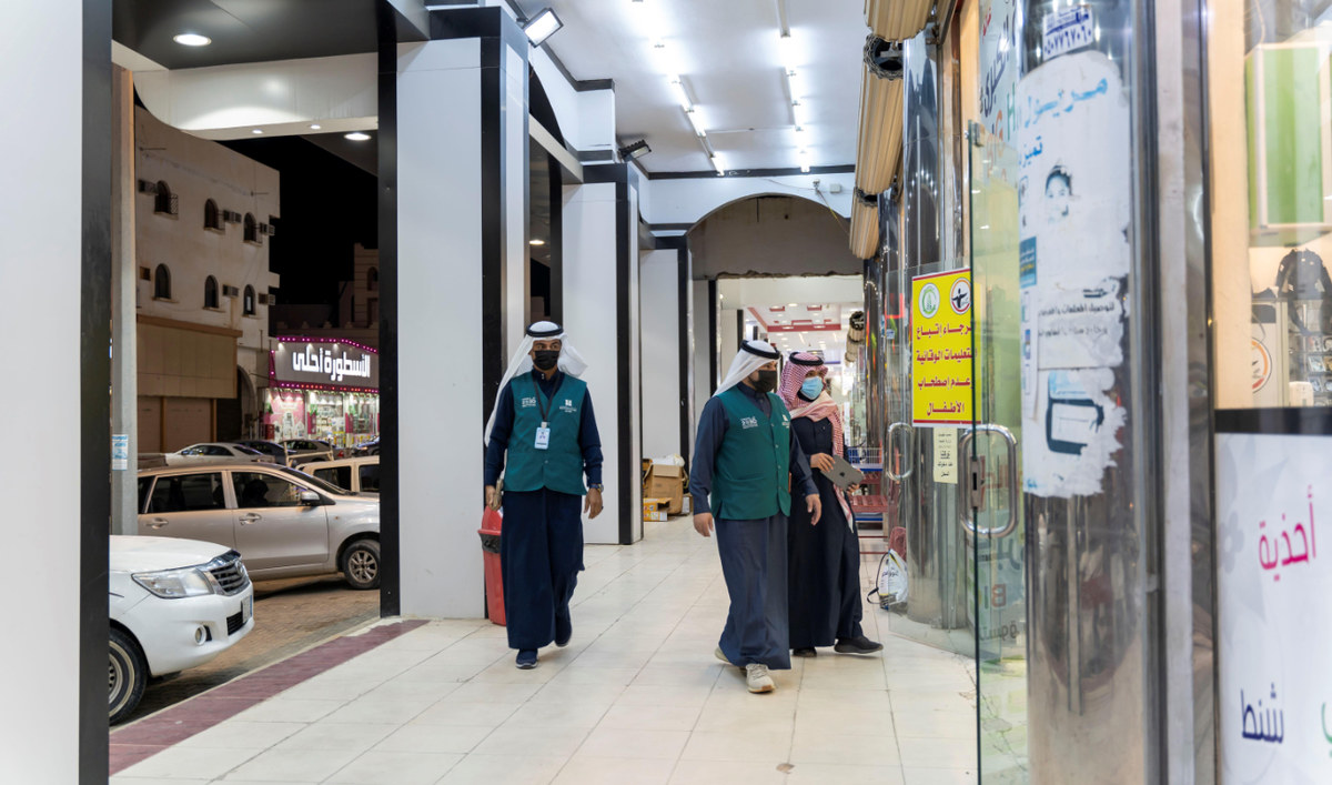Officials enter an establishment to inspect adherence to pandemic protocols. (SPA)