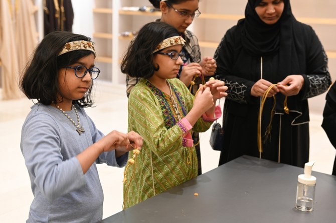 Inspired by gold embroidery from the holiest places in Islam, Suq Majaz, a shop from Al-Ahsa, offered free craft options at the Ithra Museum, helping visitors make their own bisht-inspired gold necklaces and bracelets. The bisht is a traditional cloak typically worn by men on celebratory occasions.