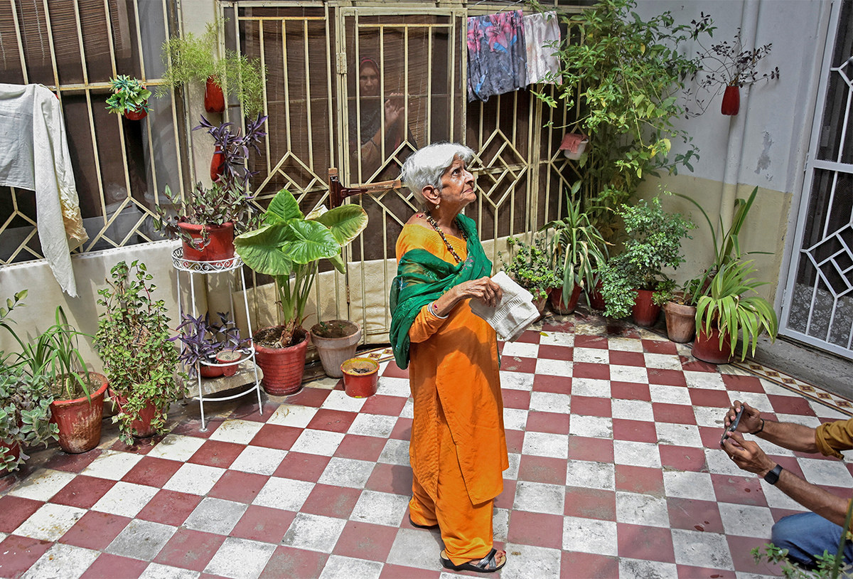 Reena Varma, 90-year-old Indian citizen born in Pakistan, stands at a neighbour's house next to her ancestral home while visiting after 75 years, in Rawalpindi, Pakistan July 20, 2022. (REUTERS)