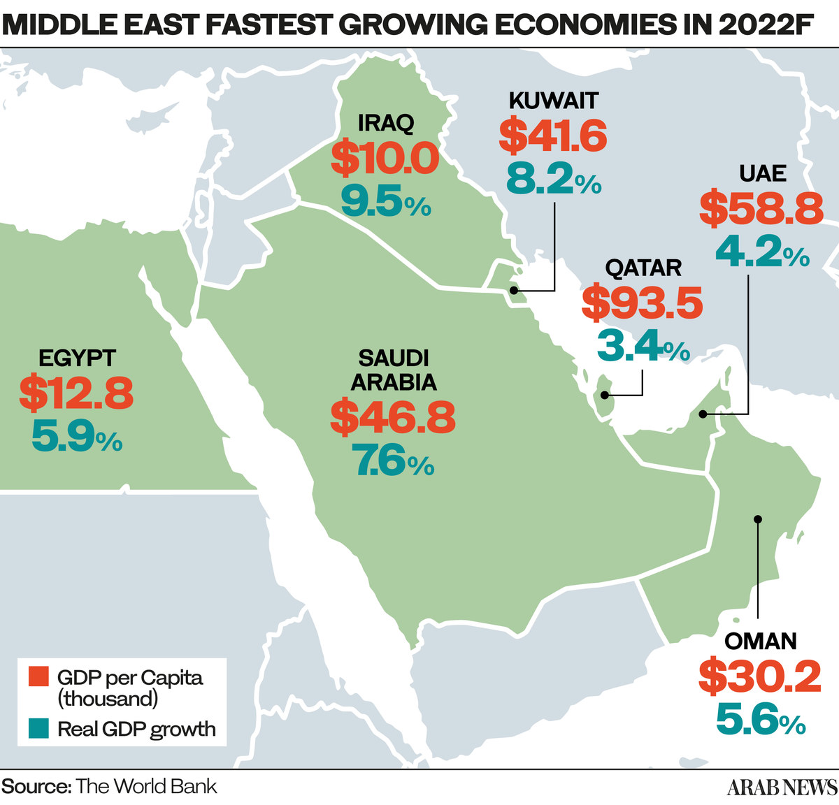 The IMF has kept its expectations for the Kingdom’s economic growth during 2022 unchanged at 7.6 percent, according to an update of its World Economic Outlook.