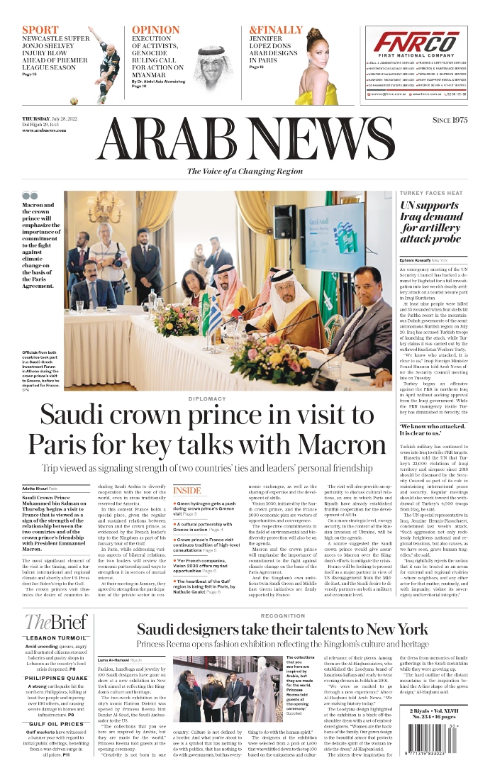 PARIS: The visit of Crown Prince Mohammed bin Salman to Paris, and his anticipated meeting with French President Emmanuel Macron, is a sign of the strength of Saudi Arabia’s relationship with France and of the depth of the bonds of their friendship.