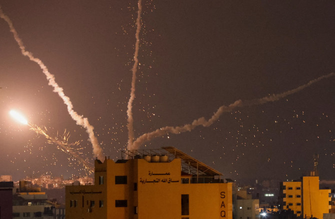 Israeli media showed the skies above southern and central Israel lighting up with rockets and interceptors from Israel’s Iron Dome missile-defense system. An explosion was heard in Tel Aviv.