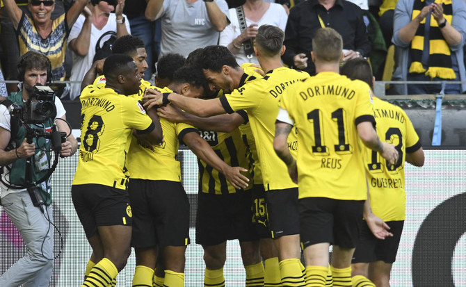 After a nervy opening, the home side took the lead in the ninth minute when Reus finished off a slick team move kick-started by aggressive pressing from Dortmund’s 19-year-old England international Jude Bellingham.