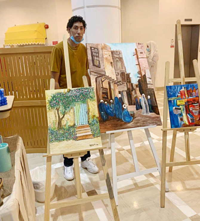 His paintings were displayed at Markaz Al-Oun Bazaar, which is a help center and non-profit organization that helps people with intellectual disabilities, and he wants to have his own gallery in the future.