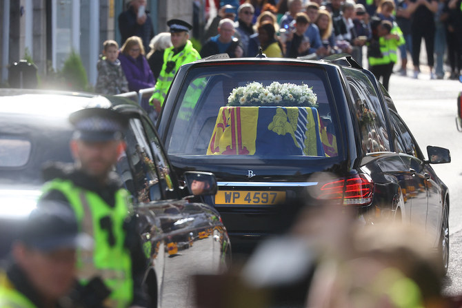 EDINBURGH: Queen Elizabeth’s coffin arrived in Edinburgh on Sunday after a six-hour journey from her summer home in the Scottish Highlands, past tens of thousands of mourners lining the route, many in somber silence, some applauding and others in tears.