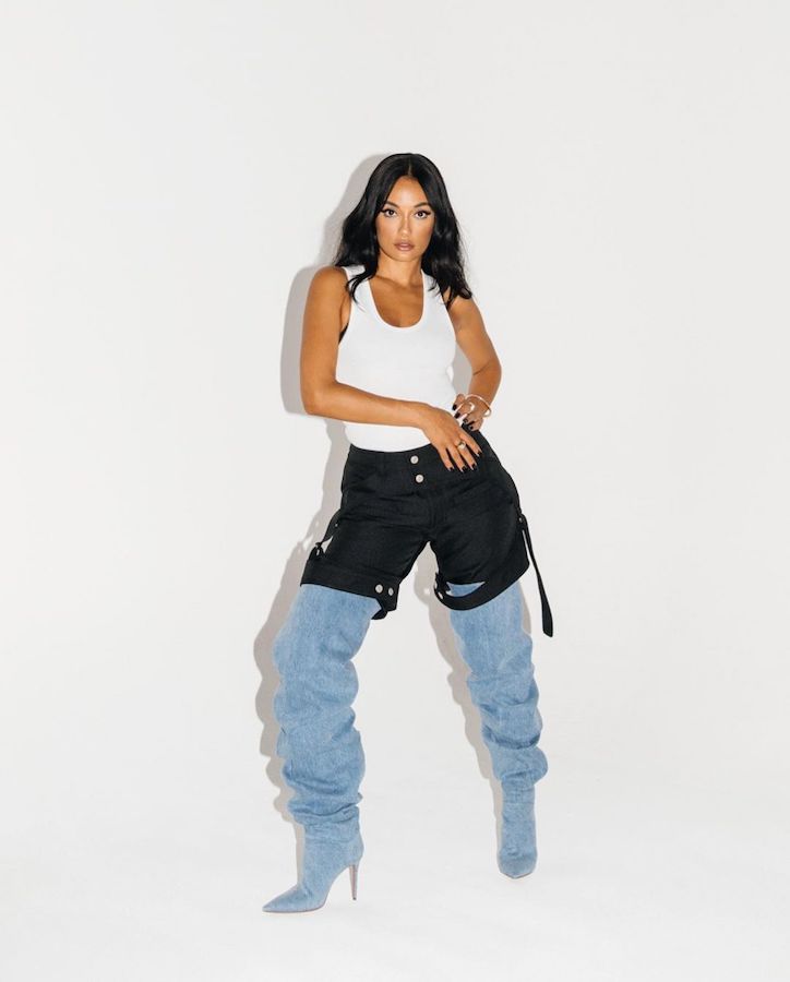 Her newest drop is a denim version of her “Jahleel” thigh-high boots. (Instagram)