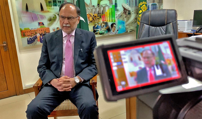 Pakistan’s planning minister, Ahsan Iqbal, speaks to Arab News Pakistan in Islamabad, Pakistan, on September 15, 2022. (AN Photo)