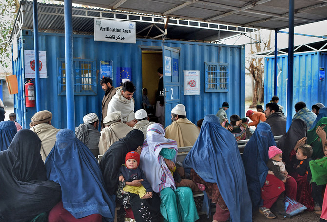 Afghan refugees wait to update their family data at the UNHCR Verification Center in Chamkani, on the outskirts of Peshawar on January 26, 2017. (AFP/File)