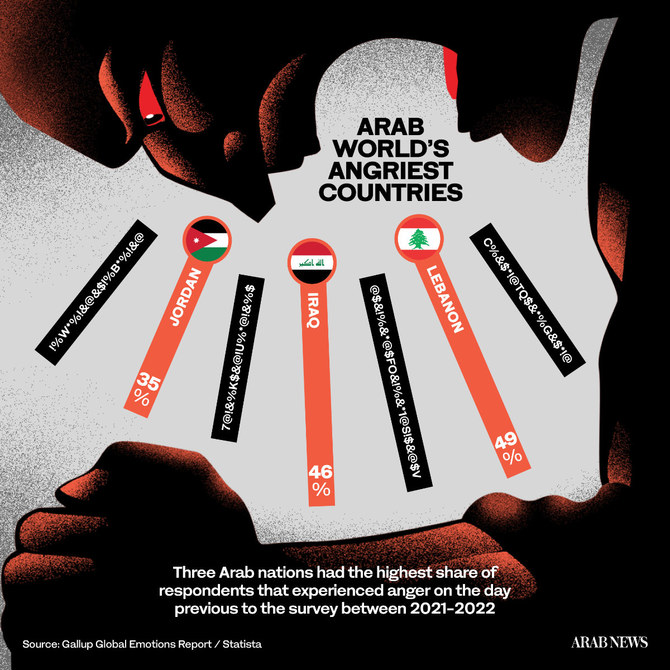In the latest Gallup Global Emotions Report, Lebanon topped the list for the highest share of respondents — 49 percent — reporting feelings of anger the previous day.