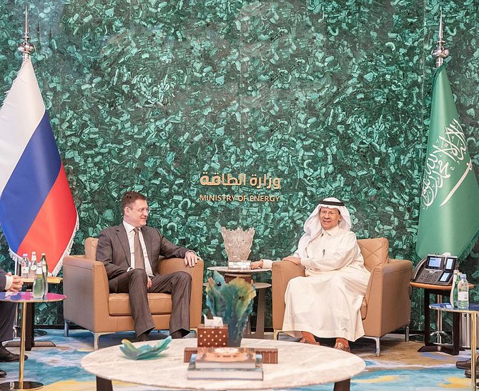 RIYADH: Saudi Arabia’s Minister of Energy Prince Abdulaziz bin Salman met with the Deputy Prime Minister of Russia Alexander Novak in Riyadh on Thursday.
