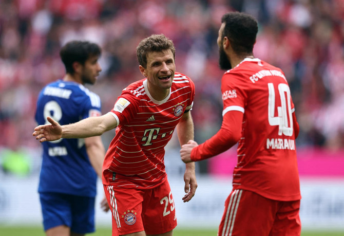 BERLIN: Bayern Munich captain Thomas Müller scored on a rare start as they took another step toward a record-extending 11th consecutive Bundesliga title by routing Schalke 6-0 on Saturday.