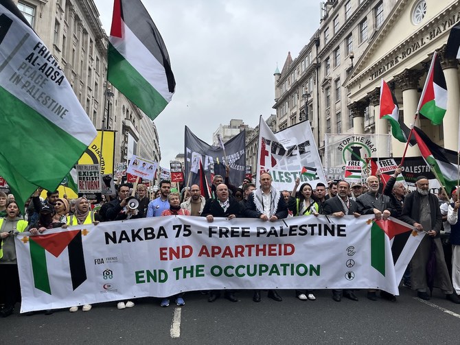 Palestine Solidarity Campaign Director Ben Jamal told Arab News that the march was a message of solidarity to the Palestinian people, “marking the Nakba not just as a historical moment and collected trauma rooted in the past but marking it as an ongoing process of colonization, dispossession and militarized oppression.”