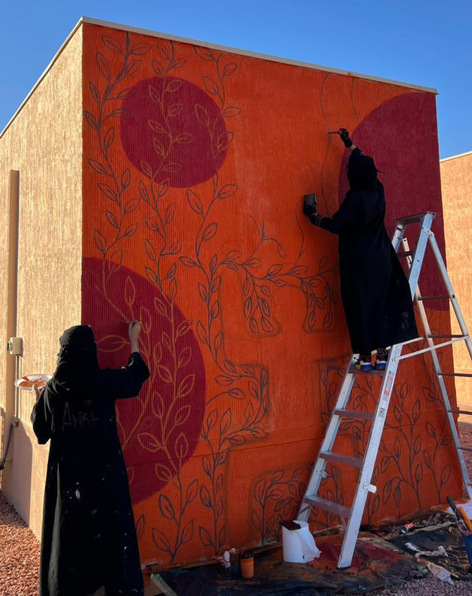 Also involved is Amal Alenzi, who specializes in oil painting and has worked on several mural projects in AlUla, and Raghad Arafah, who uses geometric designs and creative shapes to pay homage to her hometown’s heritage and nature.