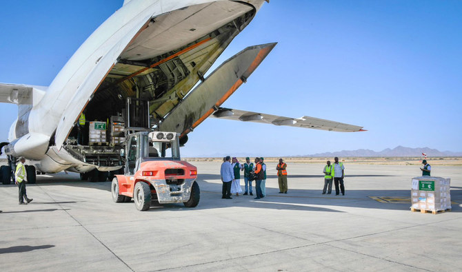 The latest aid flight is part of the Kingdom’s air bridge initiative, operated by the King Salman Humanitarian Aid and Relief Center, to help the people of Sudan.