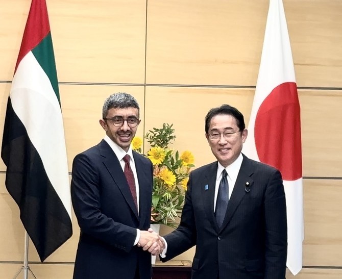 TOKYO: United Arab Emirates Foreign Minister Sheikh Abdullah bin Zayed Al Nahyan paid a courtesy call on Japanese Prime Minister Kishida Fumio on Friday and expressed his hopes for strengthening bilateral ties with Japan.