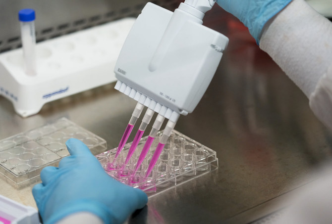 Research scientist Kevin Potts uses ovarian cancer cells to set up an experiment at UW Medicine's Cancer Vaccine Institute on May 25, 2023, in Seattle. (AP Photo/Lindsey Wasson)